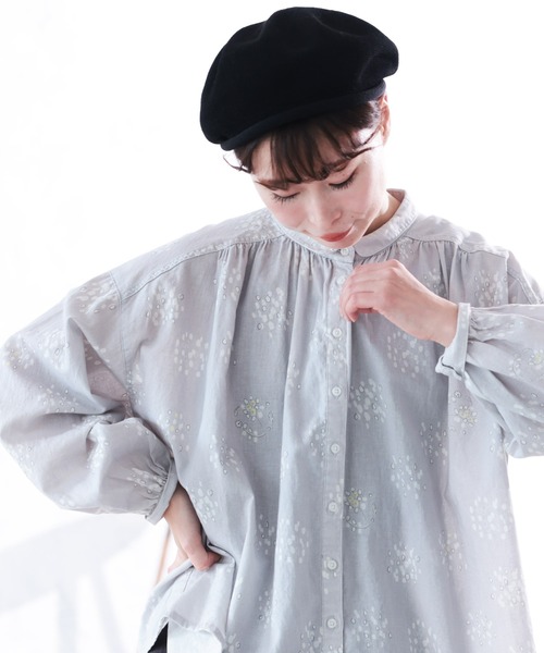 檸檬の花のブラウス そよ風に乗ってほんのり甘く香る、檸檬の花。 そのやさしい存在感を柄にしたためて、ブラウスを作りました。 枝につらなる檸檬や、お花を繊細なタッチで描くことで ドット模様のような抽象的なイメージに。 上品な甘さのモチーフを、ふんわり軽やかな生地に乗せました。 裾がゆらめくたび、 爽やかな香りが漂ってきそうな1枚です。 【仕様について】 ・裏地:なし ・ポケット:なし ・厚み:薄い ・伸縮性:なし ・透け感:やや透ける ・重量:210g(Mサイズ) 【商品の特性について】 ・麻の特性上ネップやフシが見られることがあります。素材の特徴としてお楽しみください。白化や毛羽立ちが起こりやすいので摩擦にはお気を付けください。 ・繊細な生地を使用しておりますので、縫目に過度な力が加わると、縫目が開いてしまうことがありますのでお気を付けください。 ・この商品は生産工程の関係上、切り替え部分などでの柄の配置にズレが生じたり、柄の出方が異なる場合がございます。 【お洗濯について】 ※お洗濯やお取扱いについては、商品についている品質表示タグをご確認ください。 ・ご家庭では手洗いのみOK ・(家庭用洗濯機でのお洗濯はお避け下さい) ・蛍光増白剤 漂白剤入り洗剤不可 ・タンブラー乾燥はお避けください。 ・ネット使用 ※湿気を含んだ状態や水を含んだまま放置しないでください。 ※アイロンをかける際はあて布をご利用ください。 ※手洗い押し洗い推奨。 ------------------------------ ※商品画像は、光の当たり具合や パソコン・スマートフォンなどの閲覧環境により、実際の色味と異なって見える場合がございます。予めご了承ください。 ※商品の色味は、商品単体の画像をご参照ください。