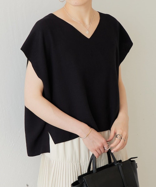 ■アイテムニットならではの優しい肌触りと軽さのあるプルオーバー。Vネックがデコルテをすっきりと見せ、シャープな印象に。ゆとりあるフレンチスリーブが二の腕を程よくカバーしてくれます。前後差のある着丈にサイドスリットを施し、抜け感のあるデザイン。ボリュームのあるボトムスやスカートともバランスよく、幅広いコーディネートで活躍します。■素材・洗濯表示素材:綿66% シルク34%洗濯表示:ドライクリーニング※着用時・洗濯時は、必ず取扱い表示・タグをご確認の上、お取り扱い下さい。----------------------------------伸縮性:あり光沢:なし厚み:ややうすい透け感:ホワイトのみややあり----------------------------------《お取り扱い上のご注意》・タンブル乾燥不可《予約商品について》・サンプルの為、素材情報、洗濯表示については企画段階の情報を記載しております。公的機関での試験データ結果を受け、量産にあたり混率や洗濯方法の変更が発生する場合がございますので、ご了承くださいませ。・サンプルでの撮影、計測をしております。商品の仕様が一部変更になる場合がございます。・撮影サンプル品はブランドタグがついておりません。製品にはタグがつきますので、製品の表に縫い糸が見える場合がございます。・工場の生産の都合上、納期が変更になる場合がございます。検品や輸送の関係で、発送日が前後しますのでご了承ください。また、入荷状況により、お客様への発送が店頭販売より遅れる場合もございます。・店頭に陳列していた商品も含まれる場合がございます。《商品画像について》ご覧頂いている商品の写真につきましては、できるだけ実物の色に近くなるように努めておりますが お使いの環境(モニター、ブラウザ等)の違いにより、色の見え方が実物と若干異なる場合がございます。 予めご了承ください。《ハートをタップして商品のお気に入り登録》【ハートをタップ】登録カラーの商品の「残りわずか」「再入荷」「値下げ」通知を受け取ることができます。【各ショップアプリにてブランドフォロー】 新商品などの入荷情報、最新のニュースやお得な情報を受け取ることができます。