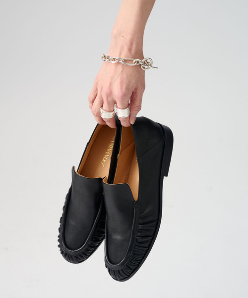 先方品番:C26-01 弊社販売カラー:メーカーカラー ブラック(001): BLACK 弊社販売サイズ:日本サイズ:メーカーサイズ 35(350):22:5 36(360):23:6 37(370):24:7 38(380):25:8 39(390):26:9 【2026SS】 VERMEIL par iena 上品な艶感のレザーで仕上げた、大人のためのローファー。 フロントのギャザーデザインがさりげないポイントになり、シンプルなコーディネートにも程よいアクセントを添えてくれます。 すっきりとしたシルエットで、パンツにもスカートにも合わせやすい万能デザイン。 かかとを踏んでも履ける2WAY仕様で、ローファーとしてきちんと感のあるスタイルにも、ミュール感覚のラフな履き方にも対応。 デイリーに取り入れやすく、シーズンレスで活躍する一足です。 ※シリーズもございます CAMINANDO カミナンド ローファー スウェード(品番 26093939001410) 【CAMINANDO/カミナンド】 2008年に誕生した日本のシューズブランド 。 熟練した靴職人を擁するこれらのファクトリーの中からモデルやデザインに合わせ、最も適したファクトリーを選定し生産を行っています。 ※サイズについて ※日本サイズはあくまで目安となります ※ソール全長・底幅・ヒール高さですが、すべて手作業での採寸ため差異がございますことをご了承ください。 【お取り扱い等について】 ・取り扱いについては、商品についている品質表示でご確認ください。 皮革の部分使用:摩擦や濡れたことによる、色移りに気をつけてください。 ・照明の関係により、実際よりも色味が違って見える場合があります。 またパソコン・スマートフォンなどの環境により、若干製品と画像のカラーが異なる場合もございます。 商品の色味は、商品アップ画像をご参照ください。 ・こちらの商品は、VERMEIL par iena での取り扱いになります。 直接店舗へお問い合わせの際は VERMEIL par iena店舗へお願い致します。