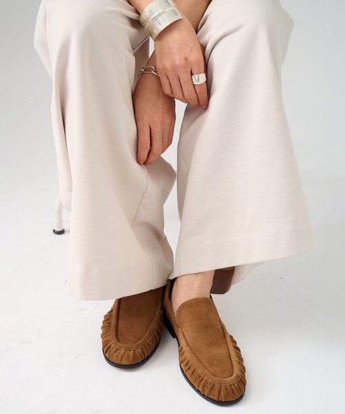先方品番:C26-01 弊社販売カラー:メーカーカラー キャメル(025): CAMEL 弊社販売サイズ:日本サイズ:メーカーサイズ 35(350):22:5 36(360):23:6 37(370):24:7 38(380):25:8 39(390):26:9 【2026SS】 VERMEIL par iena 柔らかなスウェード素材が上品な印象のローファー。 フロントに施されたギャザーデザインがさりげないアクセントになり、シンプルながら足元に表情をプラスしてくれます。 かかとを踏んでも履ける2WAY仕様で、ローファーとしてきちんと感のあるスタイルにも、ミュール感覚のラフな履き方にも対応。 デイリーからお出かけまで、幅広いシーンで活躍する一足です。 ※シリーズもございます CAMINANDO ローファー(品番 26093939001310) 【CAMINANDO/カミナンド】 2008年に誕生した日本のシューズブランド 。 熟練した靴職人を擁するこれらのファクトリーの中からモデルやデザインに合わせ、最も適したファクトリーを選定し生産を行っています。 ※サイズについて ※日本サイズはあくまで目安となります ※ソール全長・底幅・ヒール高さですが、すべて手作業での採寸ため差異がございますことをご了承ください。 【お取り扱い等について】 ・取り扱いについては、商品についている品質表示でご確認ください。 皮革の部分使用:摩擦や濡れたことによる、色移りに気をつけてください。 ・照明の関係により、実際よりも色味が違って見える場合があります。 またパソコン・スマートフォンなどの環境により、若干製品と画像のカラーが異なる場合もございます。 商品の色味は、商品アップ画像をご参照ください。 ・こちらの商品は、VERMEIL par iena での取り扱いになります。 直接店舗へお問い合わせの際は VERMEIL par iena店舗へお願い致します。