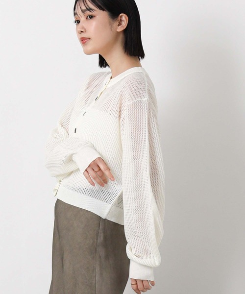 着こなしの幅が広がるシンプルなシルエットで、マルチに使えるメッシュ編みのカーディガン。 重たい印象になりがちなニットでも軽やかに着られるので、幅広いスタイリングに馴染み、レイヤードスタイルにも活躍してくれます。 キャミソールやタンクトップ、ロングスリーブなどインナー次第でロングシーズン着用できる万能アイテム。 ************************** 透け感:透ける 伸縮性:あり 生地の厚さ:薄い 裏地:なし ポケット:なし ************************** ※商品画像は、光の当たり具合や使用しているパソコンのモニターやスマートフォン等の設定により、現物と画像の色味が若干異なる場合もございます。予めご了承ください。 【 お買い物をもっと楽しんでいただく為に 】 ▼商品のお気に入り登録▼ 完売カラーの再入荷や、ラスト1点、セールの通知をお知らせします。 割引クーポンの発行などお得な情報も! ▼ブランドのお気に入り登録▼ 新商品や再入荷など、いち早くグレディブリリアンのお得な情報を受け取ることができます! 【Gready Brilliant】 「ほどよい存在感」を大切にする大人の女性のためのセレクトショップ。