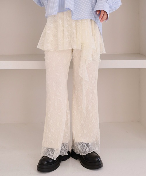 ■重ねて楽しむ、レイヤードレースパンツ■ 【デザイン】 ・トレンドのレース素材を使用したレイヤードアイテム ・フレアレースパンツとラップスカートがセットになった旬デザイン ・一気にこなれた印象に仕上がる一枚 ・それぞれ単品使いも可能で、着回し力抜群なのが嬉しいポイント ・フレアシルエットが脚をきれいに見せてくれるデザイン 【素材感】 ・柔らかく繊細なレース生地を使用 ・軽やかでストレスフリーな穿き心地 ・程よい透け感があり、抜け感のある印象に ーーーーーーーーーーーーーーー 透け感:あり(裏地なし部分) 裏地:あり 伸縮性:あり 光沢感:なし 生地厚さ:普通 洗濯方法:可(手洗い推奨) ※詳しいお手入れ方法は商品についているタグをご覧ください ーーーーーーーーーーーーーーー ※ご利用のモニター環境により、実際の色味と多少異なる場合がございます。 【スタイリング】 ・カットソー合わせでカジュアルに抜け感コーデ ・シャツやブラウスと合わせてきれいめスタイルに ・カーディガン合わせで大人フェミニンな印象に ・セットで旬コーデ、単品使いで着回しアレンジも◎ … information … 欲しいitemをお気に入り登録(♡マークをclick) ・お買いのがし対策…完売itemの再入荷やラスト1点の情報をお知らせ ・欲しいitemをお得にget…pricedownになったらいち早くお知らせ ・スムーズ検索…ZOZOのお気に入りアイテムページで簡単checkできるから、再検索不要♪