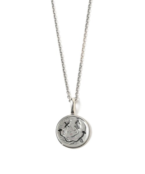 ヴィンテージ×遊び心の融合 ■デザイン ヴィンテージコインの持つ重厚な質感と、現代的な遊び心を巧みに融合させた<NORTH WORKS(ノースワークス)>の別注ペンダントです。土台となるコインの歴史的な風合いを活かしつつ、センターには大胆にスマイルマークを配することで、クラシックなアクセサリーに新鮮なインパクトを与えています。 ■ディテール チェーンの仕様を従来よりも細身のものへと変更しました。トップの重厚感を際立たせつつ、首元をすっきりと見せるクリーンな印象に仕上げています。この繊細なアップデートにより、性別を問わずユニセックスでお楽しみいただける汎用性の高さも魅力。ギフトとしてもおすすめの、細部までこだわり抜いたパッケージングとなっています。 ※こちらの製品は、ヴィンテージの個体をベースとして使用しているため、加工や位置には個体差がございます。あらかじめご了承ください。 NORTH WORKS / ノースワークス ヴィンテージのシルバーコインをアクセサリーへと生まれ変わらせる、東京・福生市発、注目のドメスティックアクセサリーブランド。一点一点、職人が熟練の業で丁寧に何百もの工程を経てコインをアクセサリーに変化させていく姿は、もはやアーティスティックな雰囲気さえ感じさせます。
