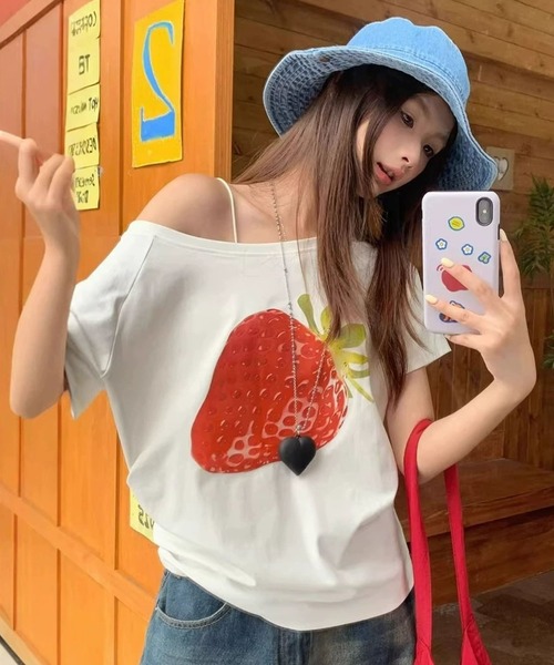 【2026‘ Early spring summer Collection】 リラックス感たっぷり♡遊び心のある可愛いデザインが目を惹く春服・夏服Tシャツ♪ フロントの大きないちごプリントがコーデの主役♡ゆるっとしたシルエットとオフショル風の着こなしで抜け感のある大人カジュアルが完成! ■Point✔ インパクトのあるBIGプリントで視線をキャッチ♪✔ オフショル風に着られて女性らしい抜け感を演出♡✔ ルーズシルエットで体型カバーも叶う◎✔ 1枚でコーデが決まる主役級デザインTシャツ✔ デニムやスカートとも相性抜群♪ ■Detail・柔らかく肌触りの良いコットン素材・広めのネックラインでデコルテをきれい見せ☆・ラグランショルダーでこなれた印象に・ヒップにかかる丈で安心感◎・デイリー使いしやすい軽やかな着心地 ……………………☑ 生地感:ふつう☑ 伸縮性:あり☑ 裏地:なし☑ 透け感:ややあり☑ 季節感:春・夏…………………… ■Coordinate・デニム合わせで王道カジュアルに♪・ミニスカートでガーリーMIXコーデ♡・ワイドパンツでラフな大人スタイルに◎・キャップやバケットハットと合わせてトレンド感アップ☆ ■Recommended For・存在感のあるプリントTを探している方・ラフでおしゃれな春夏コーデを楽しみたい方・体型カバーしつつこなれ感を出したい方・デイリー使いしやすい万能トップスが欲しい方 ※モニター・環境により実際の商品と多少色味が異なって表示がされる場合がございます。予めご了承をお願いいたします。製品には問題ございません。 ※画像の商品はサンプルとなります。 実際の商品と色味、仕様、加工、サイズ、素材等が若干異なる場合がございます。 【末永くご愛用いただく為に】 アテンションタグ・洗濯ネームタグを必ずご確認の上、ご着用又はお取り扱い下さい。 【mejane】 世界中を旅する女性をイメージしたトラベルストーリー ナチュラルでリュクス、マテリアルなのに何処かトレンドを感じさせる..大人カジュアルスタイルをご提案していきます。 TPOに合わせ 一着が多様に変化するスタイリングを楽しんでいただけるITEMを取り揃えてお待ちしております。 【お買いものをお楽しみいただく為に】 ▼mejaneの商品をお気に入りに登録 ♡をクリック! 完売カラーの再入荷通知や、ラスト1点の通知、セールの通知をお知らせします。 ▼mejaneをお気に入りブランドに登録 新商品や再入荷など、いち早くお得な情報を受け取ることができます。