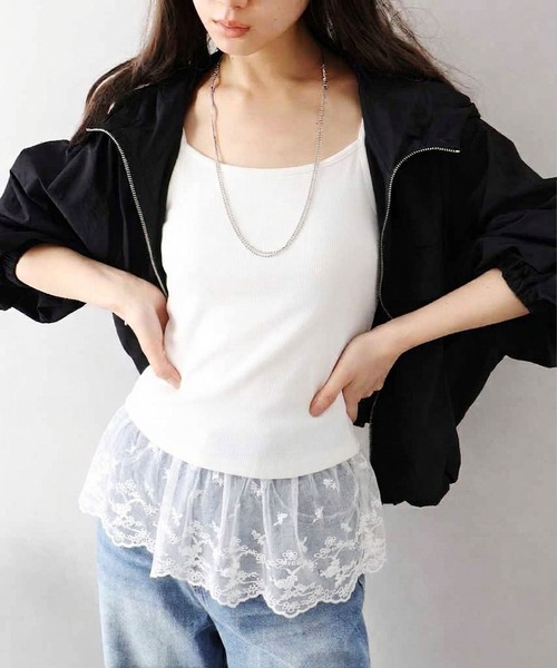 【SpRay カップ付テレコレイヤードキャミ】 いつものコーデに、甘いエッセンスを! 裾にあしらわれた繊細な刺繍チュールが目を引く、カップ付きキャミソール。 短め丈のトップスやスウェットから裾をチラリと覗かせるだけで、トレンドのレイヤードスタイルが即完成します。 カップ付きなので、薄着の季節もこれ一枚でスッキリ、可愛く決まります。 肌触りの良いテレコ素材(リブ)を使用した、着心地抜群の一枚。 カップ付きだからブラ紐を気にせず、デコルテも綺麗に見せてくれます。 おうちでのリラックスタイムにはもちろん、お出かけの日はシャツやカーディガンのインナーとして、裾のレースをアクセントに楽しんで。 #カップ付きキャミソール #レイヤードキャミ #裾レース #チュールレース #刺繍レース #テレコキャミ #リブキャミ #ブラトップ #spray #スプレイ 【素材感】 柔らかく肌触りの良い生地。 ※詳しいお手入れ方法は商品タグをご参照ください。 ◆伸縮性 有り ◆透け感 無し ◆裏地 無し 【商品のお気に入り登録】 完売カラーの再入荷通知やラスト1点の通知 プライスダウンの通知も受け取ることができます。 ぜひご登録ください◎ 【ブランドのお気に入り登録】 新商品や再入荷など、 いち早く情報を受け取ることが出来ます。 ※輸送時による、多少の汚れ・シワがある場合がございます。 ※撮影時のライティング、ご覧になっているモニター・PC環境により実際の商品と色味が異なって見える場合がございます。ご了承の上お買い求め下さい。