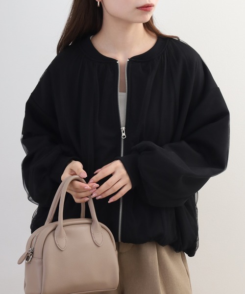 軽やかな素材と繊細な透け感が魅力のフェミニンジップトップス ■point ハリのあるダンボールニットにエアリーなチュールをレイヤードした、女性らしいデザインのフーディースタイルアウター。 軽量ながら適度な肉感があり、春夏の軽やかな着こなしにぴったりです。 ■fabric ポリエステルを主体にレーヨンやポリウレタンを混紡したダンボール素材は弾力と伸縮性に優れ、動きやすさと快適な着心地を実現。 柔らかなチュールの透け感が軽やかな表情を添えています。 ■detail フロントのジップアップ仕様で着脱しやすく、首元とバックヨークにはギャザーが施されふんわりとした立体感を演出。 リブ仕様の襟・袖口・裾が程よく引き締め、バランスの良い仕上がりです。 ■silhouette ややゆとりのあるボックスシルエットに近いコクーンフォルムで、動くたびにチュールが優雅に揺れる柔らかなライン。 ジャスト丈に整えているため、パンツやスカートとも好相性です。 ■coordinate 春夏のシーズンには、ライトデニムのストレートパンツやワイドレッグトラウザーズと合わせて、カジュアルながらも洗練されたリラックススタイルがおすすめです。 トップスとしては薄手のカットソーやブラウスを組み合わせて、チュールの透け感が際立つ軽やかなレイヤードに。 女性らしいワンピースの上に重ねれば、甘さとスポーティな要素が絶妙に調和したきれいめカジュアルが完成します。 足元はスニーカーやローファーでさりげなく抜け感を加えつつ、バッグはミニマルなショルダータイプがバランス良くまとまります。 日常から休日まで幅広いシーンで活躍する一着です。 『OKシーン』 ・公園・カフェ・ショッピングモール・美術館・映画館・図書館・オフィス・友人宅・展覧会・プールサイド・街中散策・テーマパーク・カジュアルパーティー・休日の街歩き・ナイトマーケット・アウトレットモール・空港・美術学校・日帰り旅行・プレゼント・ギフト 【mitis/ミティス】 女の子らしさ、自分らしさを大切にしたリラックスカジュアルをテーマに程よいトレンド感と着回しの効くレイヤードスタイルを提案。 ================== 【お買いものをお楽しみいただく為の方法】 ================== ★商品のお気に入り登録★ ・再入荷通知、ラスト1点通知、セール通知が届きます。 ★ブランドのお気に入り登録★ ・新商品や再入荷など、お得な情報を受け取れます。 Women's/jacket/zip-up/レディースブルゾン/春ブルゾン/夏ブルゾン/軽量ブルゾン/ジップアップジャケット/チュールブルゾン/ギャザーブルゾン/透け感ブルゾン/カジュアルブルゾン/フェミニンブルゾン/リブ仕様ブルゾン/伸縮性ジャケット/大人女性服/無地ブルゾン/チュール素材パンツ/ギャザーパンツ/春服/春物/夏服/夏物
