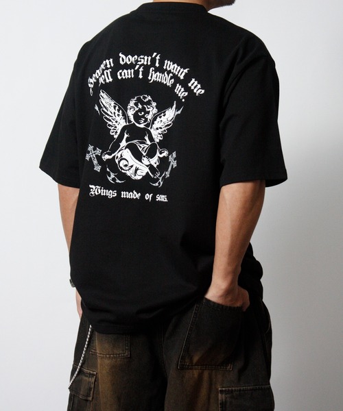 【Y2Kムードを加速させる主役Tシャツ】 ■point ・綿100%のしっかりとしたコットン素材で、肌触りが良くロングシーズン活躍 ・通気性が高く、デイリーに着やすい快適な着用感 ・程よい厚みで1枚着はもちろん、インナー使いにも最適 ・ストリートからY2Kスタイルまで幅広く対応する万能アイテム ■design ・フロント胸元には、存在感のあるオールドイングリッシュロゴをラバープリントで配置 ・バックにはエンジェルグラフィックとオールドイングリッシュロゴを大胆にプリント ・印象的なバックデザインが、後ろ姿まで抜かりないストリート感を演出 ・クルーネック仕様で、トレンドに左右されないベーシックなシルエット ・Y2Kや韓国ストリートを意識した、視線を惹きつけるグラフィックデザイン ■scene ・ストリートコーデの主役トップスとして ・ショッピングやカフェ巡りなどのデイリースタイルに ・ライブやフェスなどのイベントシーンにもおすすめ ・スケートやダンスなどアクティブなシーンにもマッチ ■coordinate ・ワイドデニムやカーゴパンツと合わせて王道ストリートスタイルに ・ブラックパンツと合わせてモード感のあるY2Kコーデに ・ハーフパンツ+ハイソックスで韓国ストリート風にもおすすめ ・シャツやパーカーのインナーとして、バックプリントを活かしたレイヤードスタイルも◎ ------------ ■■■もっとお得にお楽しみいただくために■■■ 【商品のお気に入り登録】 再入荷通知や、ラストの通知、セール通知も受け取ることができます。 【ブランドのお気に入り登録】 新商品や再入荷など、お得な情報を受け取ることができます! ※他のキャンペーンにより、期間中に価格が変動する場合があります。 ※セールは予告なく終了させていただく場合もあります。 ------------ ※ご覧いただいている環境によっては、実際のカラーと異なって見える場合がございます。あらかじめご了承くださいませ。