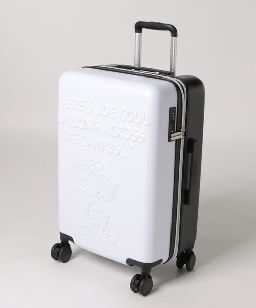 シンプルボディに大胆なエンボス加工がお洒落な 大人可愛いスヌーピーのスーツケースが登場! 内装生地にはスヌーピーの総柄を採用し、 細部までこだわったデザインになっています♪ デザインだけではなく実用性も抜群◎ 背面にはドリンクホルダーが付いているので すぐにペットボトル等を収納することができます。 エキスパンド仕様なので荷物が増えてしまっても安心。 内装のフタ側の仕切りはファスナーで閉じられるので、 開閉時に荷物がこぼれる心配がありません。 キャスターはダブルキャスターなので 凹凸の多い路面でも安定した走行が可能です。 またサスペンションキャスターなので 振動が手に伝わりにくく疲れにくいです。 電車等に乗った際に便利なワンタッチストッパー付き。 便利な巾着がついているのも嬉しいポイント♪ ※TSという表記のある鍵穴は、空港職員が中身を確認する際に使う特殊ツールの鍵穴です。そのため、ダイヤルタイプの鍵の場合、鍵は付属しておりません。また商品到着時、鍵はかかっておりません。鍵穴部分のレバーをスライドさせ開錠してください。 サイズ(当社採寸) | 総外寸:約W41.5×H61.5×D27(31)cm 外寸:約W38.5×H55.5×D27(31)cm 容量:約50(58)L 重量:約3.8kg 仕様 | ダブルファスナー式開閉 内側:メッシュ仕切り幕×1 仕切り幕(ファスナーメッシュポケット×1)×1 固定ベルト×1 ドリンクホルダー キャリーバー三段階調節 エキスパンダブル TSロック搭載 8輪キャスター ワンタッチストッパー 付属 | アルファベットシール 巾着(約W34×H43cm) ---------------------------------------------------------- *お気に入り登録 ・お気に入り登録 ハートをクリックしお気に入り登録すると、 残り1点の通知や再入荷の通知など お得なセール通知をお受け取りいただけます! ・ショップのお気に入り登録 ショップのお気に入り登録をすると、 新商品や再入荷、セール通知など いち早くブランドの情報を受け取ることができます。 ----------------------------------------------------------