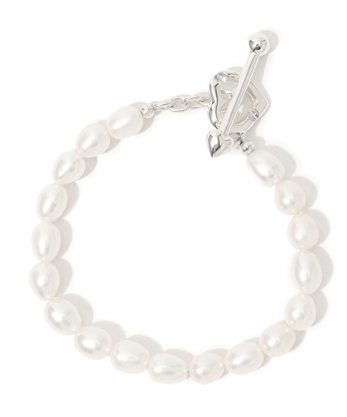 〈PALA〉らしいハートモチーフが魅力のブレスレット。 〈TOMORROWLAND〉別注でハートのマンテルを合わせたデザインをご用意いたしました。 ボリューム感のあるハートは甘すぎないモダンなデザインに仕上げられています。 上品なパールの光沢で、スタイリングに華やかさを加えてくれるアイテム。 ※素材 SLV 淡水パール 〈PALA(パラ)〉 2012年から独学で彫金を学び、デザイナー木村朱里が立ち上げたジュエリーブランド。 日常の身近なものから得る新しい視点や発見をインスピレーション源に、ジュエリーを展開。 モダンでタイムレスなデザイン、クラフトマン目線のクオリティーを大切に制作されている。 ※商品の色味は、商品単体または素材アップ画像をご確認ください 2024AW商品 店舗にお問い合わせの際は、下記の商品番号をお申し付けください。 商品番号:31-02-45-02009
