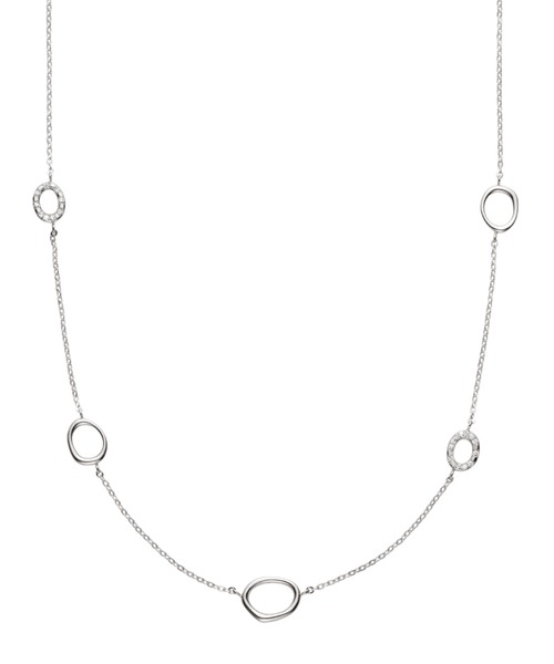 微風が揺らす水面のフォルムをプラチナとダイヤモンドで滑らかに描いたネックレス。 涼やかな風に揺らぎ、形を変えながらゆったりと流れてゆく水面。 柔らかなニュアンスを帯びたプラチナのパーツは、フォルムや大きさを変えてレイアウトし、自由に変化する水面を表しています。 プラチナの表面にセッティングしたメレダイヤモンドは、水面に反射する光のようにきらきらと繊細な輝きを添え、フラットな面のあるチェーンはプラチナの艶と白い光沢を感じさせます。 スライドアジャスター仕様でコーディネートに合わせて調節しやすく、チョーカーのように首元に沿うように短くしたり、長さのあるネックレスとレイヤードしてスタイリングを楽しんで頂けます。 心地よい揺らぎが誘う静かな安らぎの世界。抜け感のある緩やかなフォルムが連なるアイテムは、涼やかでリラックスした風を感じさせ、心地よいムードを演出します。 付属品:ボックス / ショッパー / 保証書 ※配送の都合上、リボンはお付けしておりません。 商品は、品質保持のためビニール製のチャック付き袋に お入れした後、ボックスでお包み致します。 また、付属品は画像のものと異なる場合がございますので 予めご了承くださいませ。