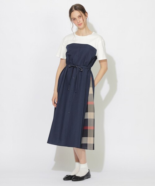 【異素材のコントラストで魅せる。 一枚で完成するドッキングワンピース】 カットソーと布帛を組み合わせたドッキングデザインで、一枚でレイヤード風の着こなしが完成するワンピースです。 トップス部分には、程よい肉感があり、きれい見えと着心地の良さが特徴の素材を使用しました。 スカート部分(布帛)には、ハリ感がありながらもナチュラルな見え感の素材を使用しました。 左脇に配したクレストブリッジチェックの切り替えが、動くたびにさりげなく華やぎを添えます。 デイリーにもお出かけにも対応できる、上品さと実用性を兼ね備えた便利なワンピースです。 【機能性】 ・マシンウォッシャブル CB CRESTBRIDGEは、日常使いできる心地よさ”Comfort”と、トレンドとカジュアルの程よい調和”Balance”がコンセプトのユニセックスファッションブランドです。