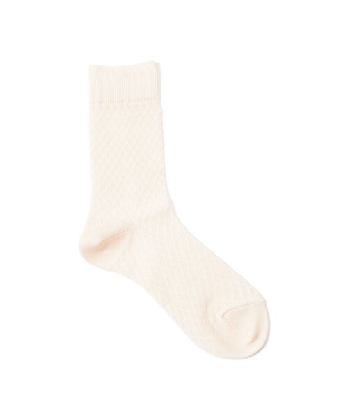 ■デザイン 上品な透け感と繊細な幾何学模様のレース柄が、足元に抜け感をプラス。シンプルながらも、さりげなくコーディネートにアクセントを添えてくれるひと品です。 ■コーディネート サンダルやパンプスと合わせて、シアーな質感を楽しむ旬な足元に。ミドル丈での着用はもちろん、ややくしゅっとさせて履くのもおすすめです。 ■サイズ 約22.5cm~24.5cm