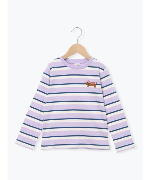 ボーダー柄にダックスフントの刺しゅうをあしらったロンT。 さりげない刺しゅうデザインがコーデのポイントになり、かわいらしい印象の一枚です。 デイリーに取り入れやすく、通園やお出かけコーデにも活躍します。 デニムやジャンパースカート、サロペットと合わせた着こなしにもおすすめです。