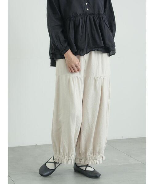 こちらはWEB限定アイテムです。 TSUHARUのWEB限定アイテムが登場! 一部カラーはECスタッフが選んだ特別なアイテムとなっています。 2300686-21-25 【tukuroi】コットンジャカード製品染めベスト《WEB限定》 とセットアップでの着用もおすすめです♪ 人気だった形をコットンジャカード生地で新たに作った別注商品です。 春らしい花柄の立体感がポイントです。 裾のフリルと少し太めのシルエットがポイントです。 色も特別に選んだ別注色になります。 *日本製品染 ※商品画像は、撮影環境やお客様のご利用のPC・スマートフォンのモニター環境などにより実物と色味に差異がある場合がございます。 【その他採寸】 F ウエスト:[ゴム仕様]66cm 裾幅:[ゴム仕様]28cm