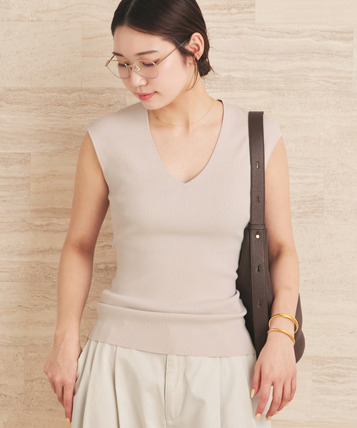 ※先方品番:BC101 (R261027) ※カラーについて 弊社販売カラー名:メーカーカラー名 グレーB(008):B11559 ブラウン B(022):11688 BROWN ※サイズについて 弊社販売サイズ:メーカーサイズ フリー(009):M 素材やデザインをPlageのために別注した、こだわりのニットトップス。 なめらかな風合いで、身体に程よくフィットする着心地が魅力。 デコルテをきれいに見せるVネックが女性らしい抜け感を演出します。 ジャケットのインナーとしても、一枚着としてもバランスよく着られるデザインです。 シンプルながらスタイリングを上品にまとめてくれる、デイリーに活躍する一枚。 【LE PETIT PULLE / ル プティ プレ 】 イタリアのニット工場(マックスマーラなどのメゾンニットを手掛ける工場)をバックボーンに持つデザイナーが立ち上げたブランド。 ベーシックなデザインが特徴で、ベーシックながら素材と工場の手の良さが際立つブランドです。 ********************** 透け感:なし 裏地:なし 伸縮性:あり 光沢感:なし 生地の厚さ:普通 ********************** ※取り扱いについては、商品についている品質表示でご確認ください。 ※ 店頭及び屋内外での撮影画像は、光の当たり具合で色味が違って見える場合があります。 商品の色味は、商品アップ画像をご参照ください。 また、お客様のお使いのPCのモニター環境などにより色味が違って見える場合があります。 予めご了承の上ご注文ください。