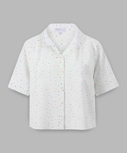小さなカラフルなハートプリントのコットン半袖ブラウス。 襟は立てても折っても、お好みに合わせて着こなしていただけます。 ※商品にアテンションカードや品質表示タグが付属している場合、必ずご確認の上、お取り扱いください。 原産国:チュニジア 組成:綿 100% 実寸情報 36 身丈:53.5cm/肩幅:40.0cm/バスト:98.0cm/袖丈:28.0cm 38 身丈:54.0cm/肩幅:41.0cm/バスト:100.0cm/袖丈:29.0cm 40 身丈:54.5cm/肩幅:42.0cm/バスト:106.0cm/袖丈:29.0cm 42 身丈:57.0cm/肩幅:44.0cm/バスト:113.0cm/袖丈:29.5cm
