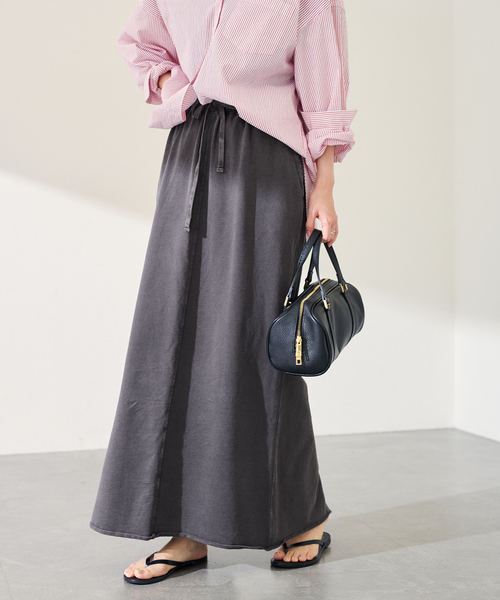 軽やかなインレー生地を使用し、製品染めとウェットオゾン加工で程よいUSED感を表現した一着。 中糸のないすっきりとした裏毛仕様で、春から初夏にかけて心地よく着用することができるアイテム。 適度な厚みがありつつも重さを感じにくく、季節の変わり目に重宝する素材感が◎ 緩やかに広がるマーメイドラインが、上品で女性らしいシルエットを演出します。 ********************** 透け感:なし 裏地:なし 伸縮性:あり 光沢感:なし 生地の厚さ:普通 ********************** ※シリーズのご案内 ウェットオゾン加工インレーセミフレアパンツ(26030220728010) ウェットオゾン加工インレーL/Tee(26070220726010) ※ウェットオゾンというブリーチの様な加工を施してユーズド感を表現しています。 染色の性質上、色味や風合いに個体差が生じます。 ※他シリーズの同カラーでも色や加工感に個体差が発生いたします。 シリーズでご購入の際は予めご了承ください。 ※加工による色あい、風合い、サイズの違いがあります。 また色落ちや色移りの恐れがあります。 ※取り扱いについては、商品についている品質表示でご確認ください。 ※こちらの商品は、FRAMeWORK での取り扱いになります。 直接店舗へお問い合わせの際は FRAMeWORK 店舗へお願い致します。 ※照明の関係により、実際よりも色味が違って見える場合があります。 またパソコン・スマートフォンなどの環境により、若干製品と画像のカラーが異なる場合もございます。 予めご了承の上ご注文ください。 ※商品の色味は、商品アップ画像をご参照ください。 本体:洗濯機洗い(弱)