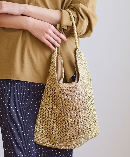 \光を編み込み、涼やかに纏うメタリックトート/ メタリックヤーンを丁寧に編み上げ、 まるでヴィンテージレースのような透け感と 気品を宿した一本手トート。 歩くたびに繊細なきらめきを放つデザインは、 シンプルな夏の装いに華やかな奥行きを与えてくれます。 ハンドメイドならではの柔らかな表情が、 カジュアルなデニムからドレスアップした パーティシーンまで、ボーダーレスに馴染む一品です。 見た目の軽やかさに反して、長財布や 500mlペットボトルもしっかり収まる頼れる収納力。 手に取るたびに心が躍るような、夏のイベントや 日常を特別に変えてくれる主役級バッグです。 【cashe cashe (カシュカシュ)】 カシュカシュとはフランス語で「かくれんぼ」を意味し、 ガーリッシュとちょっと背伸びをした大人っぽさをミックスした デイリーカジュアルなファッション小物を展開。 カラフルで素朴なハンドクラフトやかわいらしい モチーフ使いで、洋服とのコーディネートに可愛らしさと 遊びをプラスするバッグを提案します。 ------------------------ 【お気に入り登録のおすすめ】 ■商品のお気に入り(♡)登録 ┗完売カラーの再入荷通知や、完売間近の通知、ZOZO店のみのセールなどの通知を受けることができます。 ■ショップのお気に入り(♡)登録 ┗新商品や再入荷など、いち早くブランドのお得な情報を受け取ることができます。 ------------------------