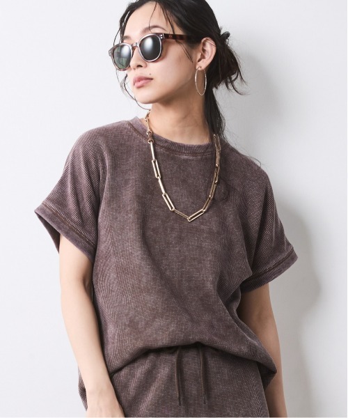 ラフなサーマル素材に、製品洗いでヴィンテージの風合いをプラス。 フレンチスリーブの絶妙なカッティングが、カジュアルな中に女性らしい繊細さを引き立てる、大人のためのベーシックです。 ■デザイン 特殊な洗い加工を施すことで、生地の端や縫い目にアタリ(色落ち)を表現。 ヴィンテージライクな風合いが、ジュエリーやモードな小物と合わせた際に最高のコントラストを生みます。 華奢見えを叶えるフレンチスリーブ、肩先をさりげなくカバーする袖丈は、二の腕をスッキリと見せる計算された角度に設計。 ノースリーブに抵抗がある方でも、安心してお召しいただけます。 裾は緩やかなラウンドヘムで、サイドにはスリットを配置。 フロントインしやすく、アウトで着てもヒップラインをさりげなく隠してくれる、大人に嬉しい丈感です。 ■素材 表面に凹凸のあるサーマル(ワッフル)生地を使用。 肌に触れる面積が少ないため、汗ばむ季節もさらりと快適な着心地をキープ。 程よい肉厚感があり、体のラインを拾いにくいのも特徴です。 着込むほど、洗うほどにヴィンテージ独特の柔らかさが増し、自分だけの一着に育っていく過程も楽しんでいただけます。 ■おすすめのスタイリング Urban Waffle Set-up:別売り同素材のタイトマキシスカートを合わせた、究極のカジュアルなセットアップスタイル。 ワントーンでまとめることで縦のラインが強調され、リラックス素材ながらも都会的でスマートな印象に。 Vibrant Color Contrast:チャコールブラウンのトップスに、鮮やかなレッドのワイドパンツを合わせた、エッジの効いた着こなし。 トップスのヴィンテージな色味が、強い赤を優しく中和し、こなれた印象に導きます。 Denim & Teal Fusion:ブラックのトップスを、鮮やかなブルーのリネンパンツやルーズなワイドデニムに合わせるスタイル。 シアーな素材感やデニムのラフさと、サーマルの表面感が合わさることで、コーディネートに奥行きが生まれます。 Clean Monochrome Edit:ブラックのトップスを、真っ白なロングスカートでクリーンに引き立てるモノトーンコーデ。 上下のコントラストをはっきりさせることで、ヴィンテージ加工の質感がより際立ちます。 <仕様> 製品洗いの為、色の出方・仕上がりサイズが多少異なる場合があります。 透け感:なし 伸縮性:ややあり 生地の厚み:普通 光沢感:なし 季節:夏向き シルエット:ゆったり <洗濯方法> 洗濯機OK ネット使用 <対応サイズ> M :バスト:79~90/ウエスト:64~69/ヒップ:91~95 L :バスト:86~94/ウエスト:69~77/ヒップ:92~100 LL :バスト:93~101/ウエスト:77~85/ヒップ:97~105 3L :バスト:100~108/ウエスト:85~93/ヒップ:102~110 4L :バスト:107~115/ウエスト:93~101/ヒップ:107~115 5L :バスト:114~122/ウエスト:101~109/ヒップ:112~120 ※こちらはヌードサイズです。 ※平置きのアイテムサイズとは異なる計測方法となりますのでご了承ください。 #ゆったり#体型カバー#二の腕カバー #大きいサイズ#プラスサイズ#大きいサイズレディース #M#L#LL#3L#4L#5L 【気になる商品はお気に入り登録がおすすめ】 ▼商品のお気に入り登録 完売カラーの再入荷通知や、ラスト1点の通知、セールの通知などお得な情報が受け取れます。 ▼ブランドのお気に入り登録 新商品や再入荷など、ブランドのお得な情報をいち早く受け取ることができます。 【CHIC STYLE】 シルエットやディティールにこだわったアイテムが好評。 色使いや素材感を大事に、洗練されたデザインと着用の力を 感じていただけるこだわり大人カジュアルを提案。 ▼公式Instagram @chicstyle_officialsite