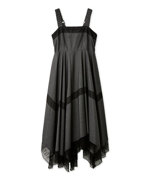 後ろ姿まで余韻を残すアシンメトリーなイレギュラーヘムが魅力のジャンパースカート。ギャザーを効かせた太めの肩紐が上半身にメリハリを与えてくれます。2種類のレースをドッキングすることで奥行きのある表情をプラス。ボリューミーなフォルムながら、裾にレースをあしらうことで軽やかな印象に。肩紐と後ろのシャーリングでサイズを調整いただくことが可能です。 透け感;なし 裏地;あり 伸縮性;なし 光沢感;ややあり 生地の厚さ;やや薄手 ※照明の関係により、実際よりも色味が違って見える場合があります。 またパソコン・スマートフォンなどの環境により、若干製品と画像のカラーが異なる場合もございます。予めご了承ください。 商品の色味は、商品単品画像をご参照下さい。 ※商品画像はサンプルのため、色味やサイズ等の仕様に変更がある場合がございますので、予めご了承ください。