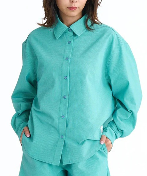 【カラーコンビのストライプがROXYらしいデザインのシャツ。】 ●オーバーサイズでサラッと羽織りやすくヒップラインもカバーします。 ●背中にはさりげなく同系色のシーズングラフィックをプリントしました。 ●裾にはオリジナルの織りネームを付けました。 ●同素材のボトムスとのセットアップスタイルがおすすめ。 ●軽くて乾きやすい、ストレッチなしのシアサッカー素材。 ●カジュアルな素材感はプールやビーチを超えて、幅広いシーンでお使いいただけます。 ●EASY DRY ●UVカット ●塩素対応 ●水陸両用