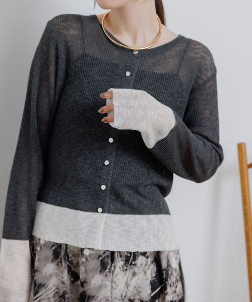 <バイカラーで配色がオシャレなニットカーディガン> ▼デザイン 透け感のある素材で春夏のコーデにピッタリなニットカーディガン。 袖口や裾の配色も可愛く、目を惹くデザイン。 フロント部分のボタンはチビ釦でシルバーカラーがアクセントになります。 夏はエアコン対策に着用するのもおすすめ。 ▼コーディネート 大人綺麗目コーデにおすすめなアイテム。 インナーを変更することで気温の変化に対応できます。 ------------------------------ 生地感:薄手 伸縮性:あり 透け感:あり 裏地:なし ------------------------------ ▼ブランド紹介 RETRO GIRL (レトロガール) 自分らしい“ベーシックアイテム”と 新しい自分の”トレンドアイテム”が 見つかる場所 今らしいファッションを楽しむ 女性のためのブランド #ニット #ニットカーディガン #春ニット #春コーデ #バイカラー #オトナコーデ ▼注意事項 ※撮影環境やモニター環境によって実際の商品とお色味が 多少異なってみえる場合がございます。 品番:RM657112N003 / 品名:バイカラーニットカーデ