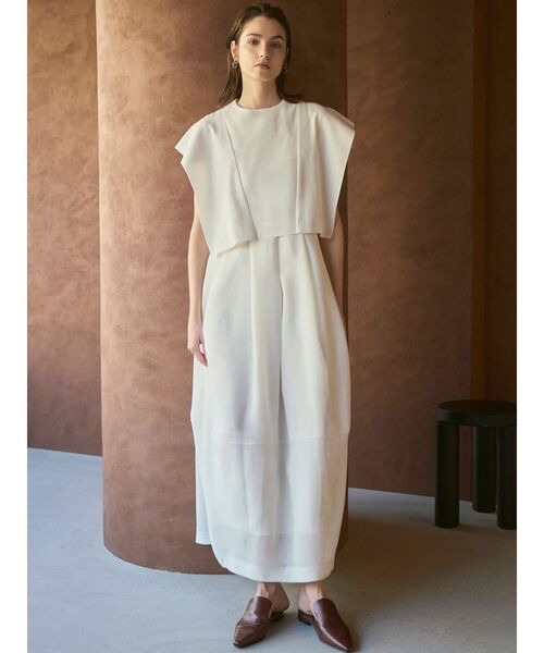 KNIT LAYERED OP ショート丈ニットとセットになった着回し自在のワンピース。 ノースリーブワンピースはスッキリとミニマルなデザインでフォルムの効いたスカートラインがポイント。 メッシュ素材が清涼感あり軽やかな印象に。 ニットはスクエアースリーブが腕周りをカバー。 短めの丈感でワイドパンツやスカートにも合わせやすいので幅広い着こなしが楽しめる1枚。 ・・・・・・・・・・・・・・・・・・ 透け感:あり 裏地:あり 伸縮性:なし 生地の厚さ:普通 洗濯:手洗い可 ・・・・・・・・・・・・・・・・・・
