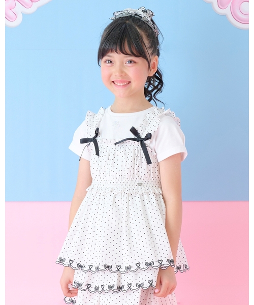 オリジナルのカットワーク刺しゅうをほどこしたキャミチュニックと半袖Tシャツのセットです。 オフホワイトは薄地のドットプリント生地×リボン&ハート、ブルーはシャンブレー生地×流れ星。 肩紐の長さはボタンで簡単に調節できます。 お揃い生地のボトム(品番:6061110)とセットアップが可能です。 ロングパンツやショートパンツを合わせるとバランス良く決まります。 内側にお名前を記入できるタグつき。 【透け感】透けない 【生地の厚さ】普通 【伸縮性】なし 【裏地】なし 【ポケット】なし