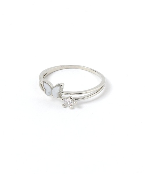 バタフライモチーフのリング。 かわいらしいピンクシルバーカラーもご用意しました。 フェミニンなスタイリングに合わせやすいアイテムです。
