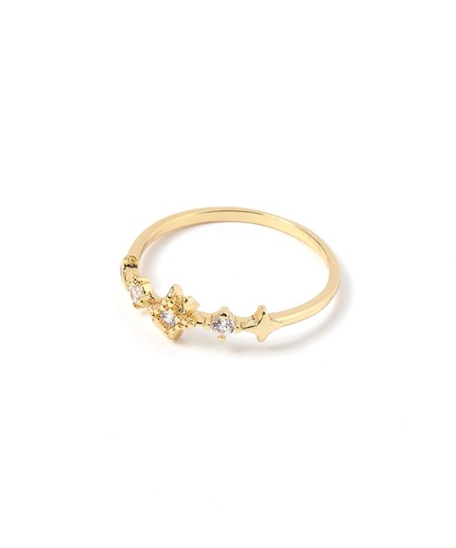 ビジューが華やかな印象のリング。 華奢なデザインで、手元をきれいに魅せてくれるアイテムです。