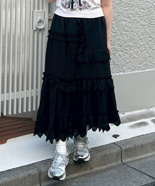 レースのハンカチをランダムにパッチワークしたようなデザインのフレアスカート。 Aラインのシルエットですが、程よい広さの裾幅で仕上げているため、すっきりと着こなしていただけます。 ウエストはぐるりゴム仕様になっており、着心地らくちんです。 合わせやすいシルエット× 繊細なレースづかいで、いつものスタイリングを格上げしてくれるアイテムです。 ・・・・・・・・・・・・・・・・・・ ・透け感:ややあり ・伸縮性:なし ・生地の厚さ:普通 ・裏地:あり ・ポケット:なし ・ファスナー:なし ・・・・・・・・・・・・・・・・・・ ・オフホワイト/白、ブラック/黒の2色展開 【サイズ展開】 ・FREE(フリーサイズ) #ガーリー#Aライン#レース#キャンスト#キャンスパ#CND ●Candy Stripper/キャンディストリッパー● -BRAND CONCEPT- NO RULE, NO GENRE, NO AGE 年齢や性別にとらわれず、自由に自分を表現出来る服 【お買い物をもっとお楽しみ頂くために】 ▼商品のお気に入り登録▼ 完売カラーの再入荷通知や、ラスト1点通知、 プライスダウンしたセール通知も受け取れる♪ ▼ブランドのお気に入り登録▼ 新作や再入荷等、いち早くブランドのお得な情報が受け取れる♪