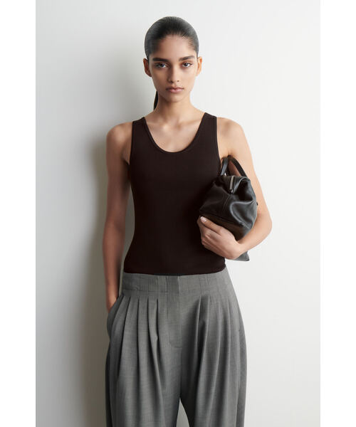 デイリーワードローブの定番であるクラシックなタンクトップ。スリムなシルエットに仕立てられ、爽やかなコバルトカラーがスタイリングに鮮やかなアクセントを添えます。スクープネックはチューブ状の縁取りで仕上げられ、サイドの切り替えからヘムラインのスリットへと美しくつながるデザインです。 ・スリムフィット ・洗濯機洗い可 サイズSの後ろ着丈:57cm/モデル着用サイズ:S