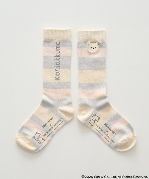 Rilakkuma × earth music&ecology キャラクターをイメージしたボーダー配色がポイントの、earth music&ecologyでしか手に入らない特別なコラボソックス。 片足にはキャラクターのフェイス刺繍、片足にはキャラクター名をあしらい、左右で異なるデザインを楽しめるアイテムに仕上げました。 さりげなくキャラクターを取り入れられる可愛らしいデザインも魅力です。 ミニ丈のボトムスと合わせてコーディネートの主役にするのはもちろん、長め丈のボトムスからちらっと見せるスタイリングもおすすめです。 やわらかなはき心地で足あたりが良く、デイリーに取り入れやすいのも嬉しいポイント。 コーディネートのアクセントとして活躍してくれる一足です。 ご自身用はもちろん、ギフトにも喜ばれるアイテムです。 ●素材 やわらかな綿混素材で、ほどよいフィット感のある快適なはき心地です。 ※サンプルにて撮影を行っております。実際にお届けする商品と仕様やサイズが異なる場合がございます。 ※モデル着用画像は光の当たり具合で色味が違って見える場合がございます。商品の色味は物撮りの画像をご参照ください。 ● earth music&ecology ● (アースミュージック&エコロジー) 「私」を、もっと好きになる。 今の時代に寄り添う、 女性らしさをかたちにしたスタイルで、 すべての大人の女性の ときめく毎日を応援します。 ▼ 商品のお気に入り登録がおすすめです ▼ 商品ページ内の「♡」ハートマークをクリック。完売時の再入荷や、最後の1点の通知、コーディネート画像がアップされたとき、お得なお値下げの際の通知を受ける事ができます。 【お知らせ】ページでも通知が確認できます。