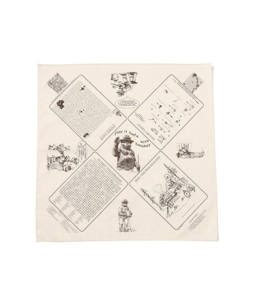 愛らしいキャラクターがプリントされた1枚 ■デザイン アメリカで長年親しまれている山火事防止キャンペーンのマスコット「スモーキーベア」をあしらったネイチャープリントバンダナ。スモーキーなペイズリー柄とキャラクターを組み合わせたデザインで、アメリカンカルチャーを感じさせる一枚です。コットン100%で扱いやすく、ギフトにもおすすめのアイテム。 ■コーディネート お弁当包みやバッグのアクセント、ポケットから覗かせるなど、スタイリングのポイントとして活躍。首元やヘアアレンジにも取り入れやすく、日常のコーディネートにさりげない遊び心をプラスしてくれます。 THE PRINTED IMAGE デザインの美しい、洗練されたデザインをコンセプトとして1978年にカリフォルニア州にて設立。卸し先は美術館や国立・州立公園、自然センター、水族館、動物園など、その他国内外の多くの小売店。ディテールにこだわった高品質の商品を提供しています。