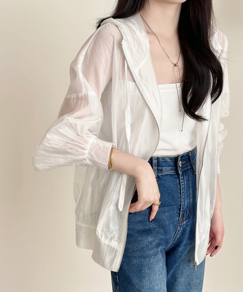 ■レディース フード付き シアーライトアウター 羽織るだけで華やぐ 紫外線/冷房対策 フード付きシアーライトブルゾン SHEER HOODED BLOUSON ■SIZE:FREE ◆アイテムのお気に入り登録◆ ハートマークをクリックしてお気に入り登録しておくと、 本アイテムが“あなただけのタイムセール”候補になります! 他にも本アイテムのプライスダウン情報・再入荷・ラスト1点など いち早くお得な通知を受け取ることができます! ほんのり透けるシアー素材が魅力 大人のためのフード付きブルゾン。 薄手でさらっとした着心地だから、春夏の羽織りとしてはもちろん冷房対策にもぴったり。 ほんのり光沢のある生地が、カジュアルすぎず上品な印象をプラスしてくれます。 Fabric ほんのり透け感と光沢感のある薄手シアー素材。 なめらかでさらっとした肌触りと軽やかで涼しげな着心地が魅力。 デザイン性も機能性も充実 Detail Point Detail 1 ニュアンスをプラスするフード付き 紐付きで調節可能。 顔まわりにニュアンスをプラス◎ Detail 2 二の腕ふんわりカバー◎パフスリーブ パフスリーブ仕様で、やわらかく女性らしい印象に。 Detail 3 腕まくりもしやすい袖口シャーリングゴム 半分シャーリングゴムで、程よいフィット感◎ Detail 4 コーデに馴染みやすいフロントジップ 気温に合わせて着脱しやすいフロントジップ仕様。 ■MODEL ホワイト、グレー 162cm/45kg B:81/W:61/H:82 着用サイズ: FREE ブラック、ライトベージュ 161cm/43kg B:78/W:57/H:81 着用サイズ: FREE 【商品仕様】 ・生地の厚さ:薄手 ・透け感:あり ・伸縮性:なし ・裏地:なし 【セット内容】 ・1点 ・ライトアウター ◆ブランドのお気に入り追加◆ セールやクーポン配布情報/新作アイテムの入荷/ショップニュースなど ブランドの最新情報を受け取ることができます。 Instagram > @day_closet1203 tiktok > @daycloset.official ●サイズ表をご確認の上、お間違いのないようご購入下さい。 ※サイズは平置きで測定しております。 サイズは、実寸サイズを測っているため多少誤差がでる場合があります。 製造工程の関係上、各採寸箇所実寸(平置き)より【約-3cm~+3cm】程度は 誤差の許容範囲とさせて頂いておりますので、予めご了承くださいませ。 ●商品・着用者によっては多少の誤差がある場合がございます。 ●生地の取り方により、柄の位置等写真と異なる場合がございます。 ご了承ください。