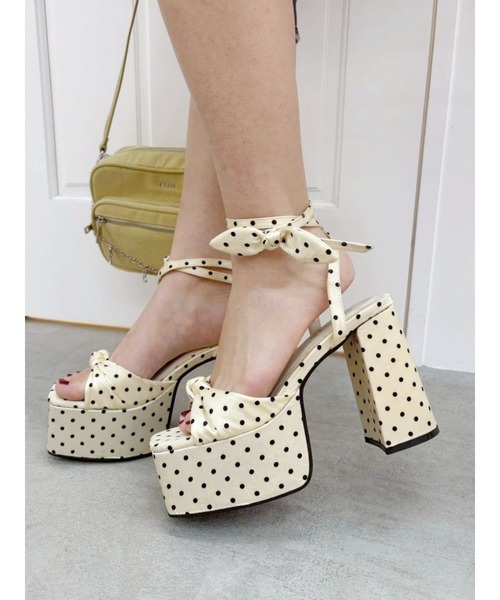 足首にくるっと巻けるレースアップデザインのヒールサンダルです。ヒョウ柄・ドット柄・無地ブラックの3タイプ展開で、シーンや好みに合わせて選びやすいカラー展開です。高低差を抑えた厚底仕様で、安定感があり履き心地の良い1足です。靴下合わせもおすすめです。