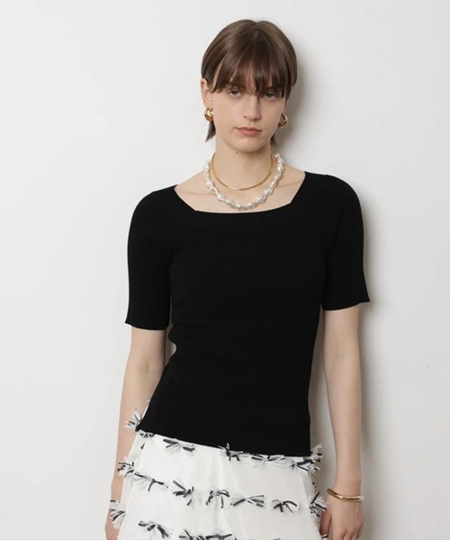すっきりと開いたデコルテラインが女性らしさを引き立てる、リブ編みのハーフスリーブニット。 程よくフィットするシルエットで一枚でもきれいに決まり、ジャケットやシャツのインナーにも活躍します。 ワイドパンツで抜け感を出したり、マーメイドスカートで上品にまとめたりと、幅広いスタイリングが楽しめるアイテムです。 【ご注意】 ※撮影照明の関係により、実際の商品と色味が異なって見える場合がございます。 また、パソコン・スマートフォンなどの環境により、製品と画像のカラーが異なる場合もございます。 予めご了承ください。 ※商品画像はサンプルのため、色味やサイズ等の仕様に変更がある場合がございますので、予めご了承ください。