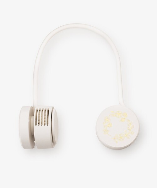 首に掛けて両手を自由に使えるコンパクトネックファンです。 本体には上品なフラワーモチーフをあしらいました。アーム部分は柔軟に曲げることができ、好みの角度に調節が可能。くるくると巻いてコンパクトにまとまるため、付属の専用ポーチに入れてかさばらずに持ち歩けます。毎日の通勤や通学、アウトドアなど幅広いシーンで重宝するアイテムです。 ■主な機能 ・髪の毛を巻き込みにくい羽根なし仕様 ・選べる3段階の風量調整 ・パソコンなどから給電できるUSB充電 *付属品/充電用USBケーブルType-C、収納ポーチ、取扱説明書(保証書) *定格入力/DC 5V 1000 mA(USB充電式) *内蔵電池/リチウムイオン蓄電池 3.7V 1600 mAh 5.92Wh *風量調節/3段階 *充電時間(約)/3時間(接続機器や環境により異なります) *連続使用可能時間(約)1-4時間(選んだ風量により異なります) *本品はリチウムイオンポリマー電池を使用しています。充電池の特性上、使用していなくても徐々に放電していく為、初回使用時に電源ボタンを押しても運転が開始されない場合があります。初回使用時は必ず充電してから使用してください。 *充電する際は必ずそれぞれの機器の取扱説明書に記載された範囲の電源を使用してください。出力が不足したり過剰になると故障や作動の不具合、発熱、発火等の原因 となります。 *急速充電には対応していません。 *箔加工製品は、摩擦や使用を繰り返すことにより表面の光沢が低下し薄くなることがあります。特性上、避けることができないため予めご了承ください。 *ハンドクリームや薬品の付いた手でプリント部分を触ると剥離の原因となりますのでご注意ください。 *付属の注意書きをよく読みご使用ください。 *1点ごとに柄の出方が違うことがあります。 【箱】縦14cm/横12cm/厚み8.5cm 【本体収納時】縦5.5cm/横11cm/厚み4.3cm 【ケース】縦7.5cm/横13.5cm/厚み6.5cm 【コード】長さ102cm