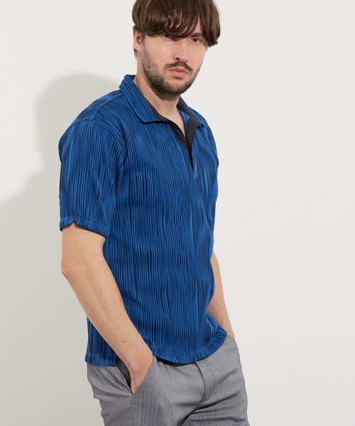 ■デザイン Vゾーンを綺麗に見せるスキッパーポロシャツになります。 別生地にブラック×ホワイトのピンストライプのシャツ生地を使用し、尚且つバイアス使いすることでアクセントになり、大人綺麗目に仕上げました。 袖口にサイドスリット仕様を施し、衿周りにはワイヤ-を入れて着こなしのアレンジが効く様にするなどワンランク上のポロシャツに仕上げています。 ※60ブルー×ネイビーは新色になります。 ■サイズ ほどよいリラックスフィットで着心地抜群。 ウエストにやや絞りを入れたシャープなシルエットが魅力です。 ■素材 タック編みでランダムなウェーブ柄を表現しています。 独特なジャカード柄で軽く立体感のある編地のテクスチャーがポイントです。 ウェーブタックジャガード生地をヨコ使いすることで、他にないストライプ柄になります。 伸縮性:あり 生地の厚さ:普通 【WEB限定販売商品】 お店では手に入らないWEBだけの限定商品です。 通常のハイダウェイ商品よりもお安めなところも魅力的です。 ※画像の商品はサンプルです。 実際の商品とは仕様・加工・サイズ・素材が若干異なる場合がございます。 ※掲載画像の商品の色味は、撮影場所や光の当たり具合などにより色味が異なって見える場合がございます。 商品の色味は、生地アップの画像をご参照ください。 また、お客様のお使いのPC・スマートフォン等のモニター環境などにより色味が異なって見える場合がございます。 予めご了承の上ご注文ください。 ※着用モデル身長182cm B89cm W75cm H90cm 着用サイズ48