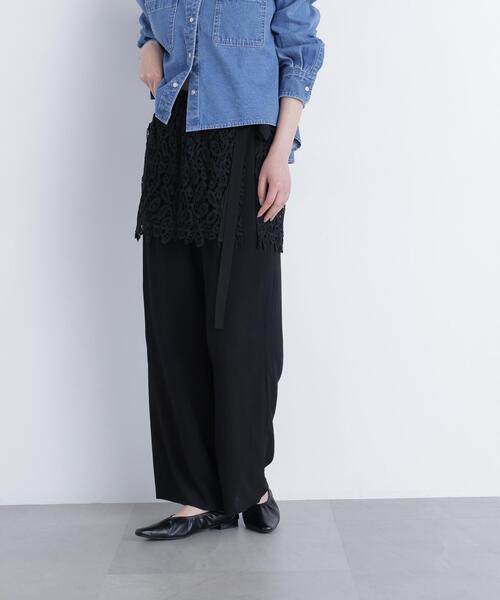 【N.(N. Natural Beauty Basic)】 NATURAL BEAUTY BASICカジュアルライン。 カジュアルなテイストな中に、女子っぽさをプラスした、 大人カジュアルスタイルを提案します。 楊柳パンツと立体感のあるレースエプロンのレイヤードセット。レースエプロンはサイドリボンで着脱できます。 パンツはウエストぐるりゴム仕様で快適なはき心地。 表情ゆたかな楊柳素材にレースエプロンを重ねることで、軽やかで奥行きのあるスタイリングが楽しめます。 <素材> エプロンはケミカルレース、パンツは楊柳素材を使用しています。 <詳細> 仕様・開閉なし 裏地・あり 透け感・なし / 光沢・なし / 伸縮性・ややあり 生地の厚さ・普通 ●取り扱いについては、商品についている品質表示でご確認ください。 ●撮影はサンプル商品で行っている為、仕様とサイズが異なる場合がございます。 ●スタジオ及び屋外で撮影した着用画像は、光の当たり具合やご覧のモニターによって色味が違って見える場合があります。予めご了承ください。 ●生産時期により色・素材・サイズ感など多少異なる場合がございます。予めご了承ください。 〇返品・キャンセルについて ・着用・洗濯後の返品・ご交換は致しかねます。 ・商品到着後、着用または使用前に商品を確認して頂きますようお願いいたします。 ≪お買い物をよりお楽しみいただくために!≫ ・「商品のお気に入り登録」 再入荷通知や、ラストの通知、セール通知も受け取ることができます。 ・「ブランドのお気に入り登録」 新商品や再入荷をはじめ、タイムセールやクーポンなどいち早くブランドお得な情報を受け取ることができます。
