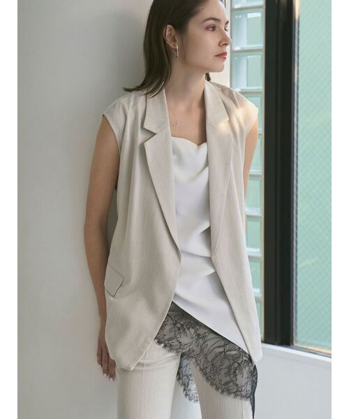 BELTED TAILORED GILET 麻調素材を使用したテイラードタイプのジレ。 リラックスしたサイズ感でラフに使えるアイテム。 ベルトは結ぶことはもちろん附属のボタンで留めてアレンジもOK。 同素材のフレアパンツとセットアップで着用可能 ▼同素材展開シリーズ フレアパンツ(品番:512640701801) ・・・・・・・・・・・・・・・・・・ 透け感:なし 裏地:なし 伸縮性:ややあり 生地の厚さ:普通 ・・・・・・・・・・・・・・・・・・ 【 お買いものにおすすめの便利機能! 】 ▽商品のお気に入り登録 完売カラーの再入荷時や、ラスト1点の時、セール開始時にお知らせします。 ▽ブランドのお気に入り登録 新商品や再入荷、セール情報など、いち早くブランドのお得な情報を受け取ることができます。 ぜひご活用ください。 ※実際にお届けする商品と仕様やサイズが異なる場合がございます。 また生産の都合上、お届け時期が前後する場合がございます。
