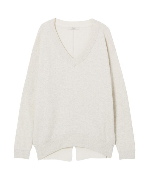 両面でバイカラー使用のVネックニットです。バックにはスリットが入ったデザインでレイヤードスタイルも今までとは違った新鮮な印象です。少し張り感のある素材なのでキレイめカジュアルなスタイリングにもマッチします。