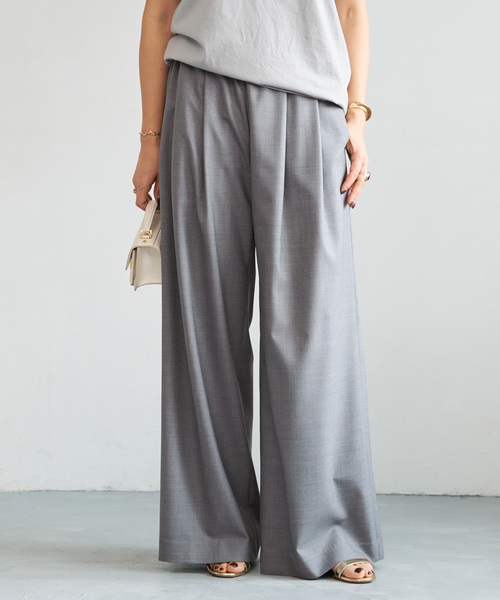 大好評を頂いたCOOL VICTORIAN イージーパンツが今シーズンも再入荷! ライトグレーに加え、新色のブラウンが登場。 ラフさと優雅さを兼ね備えた、優秀イージーパンツ。 上質なVICTORIANサマーウールを贅沢に使ったワイドシルエット。 さらりとした質感が心地良く、これからの季節にぴったりな1枚。 ニットやTシャツなどシーンに合わせて幅広いスタイリングを楽しんで頂けます。 ホームクリーニングできる素材はこれからの季節に最適。 ※同一商品(グレーのみ):25030500417110(若干の仕様変更がある場合がございます。) ※取り扱いについては、商品についている洗濯表示にてご確認下さい。 ※照明の関係により、実際よりも色味が違って見える場合があります またパソコン・スマートフォンなどの環境により、若干製品と画像のカラーが異なる場合もございます。 ※商品の色味は、商品アップ画像をご参照ください。 ※こちらの商品はお一人様1カラー・1サイズにつき1点までの購入とさせていただきます。 本体:手洗い可能