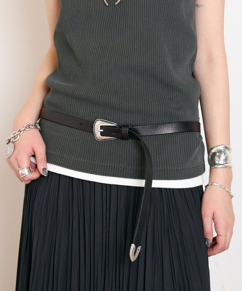 金具にこだわってセレクトした別注ウエスタンベルト。 シンプルにも使いやすいウエスタンなバックルなので普段使いにも最適。 腰元で一巻きしてポイントになるように長さを15cm程伸ばしています。 【PUNTOVITA/プントヴィータ】 1980年代にイタリアのベルト工房としてスタート。 コンチョを用いた伝統的な製法にデザインはリアルユーズ出来るように独自なアレンジを加えています。 オールイタリアンメイド。 ※照明の関係により、実際よりも色味が違って見える場合があります。 またパソコン・スマートフォンなどの環境により、若干製品と画像のカラーが異なる場合もございます。 ※商品の色味は、商品アップ画像をご参照ください。 ※メーカー型番:ベッチュウ ※カラーについて 弊社販売カラー名:メーカーカラー名 ブラック(001):NERO ブラウン(020):T.MORO ※サイズについて 弊社販売サイズ名:メーカーサイズ名 80(080):80 85(085):85