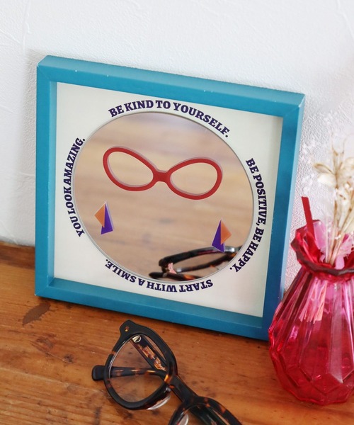 鏡の中の自分に、ちょっと遊び心を。 贈り物にもぴったりなインテリアミラー 写り込むとまるで眼鏡をかけているように見える、ユニークなデザインミラー。 身だしなみをさっと確認したいときにはもちろん、インテリアとして飾るだけでもお部屋のアクセントになるアイテムです。 コンパクトなサイズ感で、玄関やデスク、棚の上など、場所を選ばず取り入れやすいのもポイント。 背面には壁掛け用パーツ付きで、置き・掛けの2WAYでお使いいただけます。 自分用にはもちろん、友人やご家族へのギフトにもおすすめです。 <お取扱い上の注意> ・本製品は一点ずつ仕上がりに個体差があります。製品の特性としてご理解ください。 ・ご使用の際は確実に製品が掛かっていることを確認してください。 ・衝撃等による落下や破損にご注意ください。 ・直射日光や高温多湿な場所を避けて使用・保管してください。 ・小さなお子様の手の届かないところで使用、保管してください。 ※屋外の光や照明の当たり具合で、実物と色味が異なって見える場合がございます。詳細画像の色味をご確認ください。 なお、商品の色や質感を出来るだけ忠実に再現するよう心掛けておりますが、パソコンなどの環境により、実物と若干異なる場合がございます。 ※写真を許可無くコピー・転用することは固くお断りします。