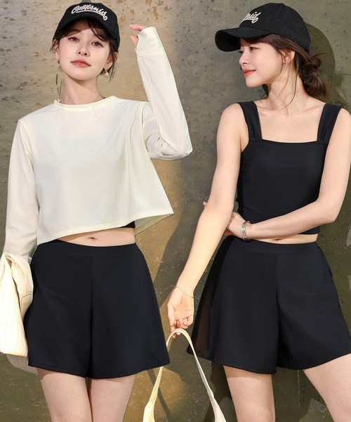 ■紫外線カット率99.9%以上/UPF50+/サムホール付き/体型カバー/水陸両用/大きいサイズ有 ■レディース お洋服見え 長袖クロップド丈ラッシュガードトップス+インパン付きタンキニ 3点セット水着 SWIMWEAR COLLECTION 3set ■SIZE:S(7号) M(9号) L(11号) LL(13号) ★画面右下のハートマークをタップでお気に入り登録★ タップすると“あなただけのタイムセール”候補に♪ プライスダウン情報/ラスト1点/最入荷の通知など いち早くお得な情報も受け取れます! 【セット内容 / 3点】 長袖トップス/ブラ/ショーツ一体型パンツ 【サイズ】 ■長袖トップス 着丈:38/39/40/41 ■タンキニ トップバスト:72-80/79-87/86-94/93-101 アンダーバスト:60-67/65-72/70-77/75-82 ウエスト:58-64/64-70/69-77/77-85 パンツ丈:33/34/35/36 【商品詳細】 ・パッドポケット:あり(パッド付き) ・ワイヤー:なし ・肩ひも取り外し:不可 ・肩ひも調節:不可 ・アンダー調節:不可 【紫外線対策に…】 UVカット率(紫外線遮蔽率) 「99.7%!」「UPF50+」! お客様に安心してご使用いただくため、紫外線遮蔽率・UPF・接触冷感性を日本の試験機関にて検査済みです。 【DETAIL / 機能性】 ・パッド付き 届いてすぐ使えるパッド付き! お手持ちのパッドと入れ替えも可能。 ・ノンワイヤー 締め付け感が無く快適な着心地。 【POINT】 ・オシャレに体型カバー!シンプルタンキニ 肩紐太めで安定感のあるタンキニスタイル! 身体に沿ったデザインでスッキリ着こなせる。 ・UV対策ラッシュガード サムホール付きで手の甲までしっかりガード! UPF50+で紫外線から肌を守ります。 夏らしく程よく肌見せもできる今っぽい丈感が◎ ■MODEL 163cm/42kg B:77/W:59/H:85 着用サイズ:M ●サイズ表をご確認の上、お間違いのないようご購入下さい。 バスト・ブラカップ・ウエスト・ヒップはヌードサイズ、 着丈・トップス丈・パンツ丈は平置きで測定したサイズです。 ※水着は水分を含むとサイズ感に余裕が出る作りとなっておりますので、多少小さ目の作りとなっております。 サイズ表号数とヌードサイズを参考にサイズをお選びください。 ●商品・着用者によっては多少の誤差がある場合がございますこと、お色味は、照明の関係で実物と多少の違いが生じることがございますこと、 生地の取り方により、柄の位置等写真と異なる場合がございます。予めご了承ください。 ※当該商品は衛生商品のため、基本的に初期不良品以外の返品/交換については対応対象外となっております。予めご了承下さいませ。 ★ブランドのお気に入り登録でお得な情報ゲット★ 新商品/再入荷/セール&クーポン情報などブランドの最新情報を受け取ることができます! Instagram > @day_closet1203 tiktok > @daycloset.official