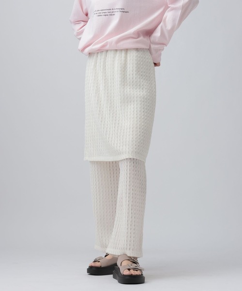 トレンドのレイヤードのコーデ表現できる同素材ドッキングパンツ 【デザイン】 表面感のあるカットレースを使用したドッキングパンツです。ウエストはゴム仕様で楽に着用でき、1枚着用するだけでボトムスレイヤードが簡単に叶います! 【スタイリング】 ・Tシャツやデニムシャツなどと合わせてカジュアルさをプラスするのがおすすめです。 --------------------------------------------------- 【気になる商品はお気に入り登録がおすすめ!】 ・在庫残りわずか ・再入荷 ・セールの情報 などの通知を受け取ることができます。 気になる商品は♡をクリックして、 「お気に入り登録」しましょう! 【ショップ・ブランドのお気に入り登録も!】 新商品や再入荷、セール、クーポンの配布など、 いち早くお得な情報を受け取ることができます。 ---------------------------------------------------
