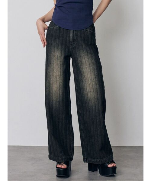 ストライプ見えのデザインがポイントのデニムパンツ シンプルながらコーデのアクセントになる1着◎ ■アイテム 糸の節がランダムに出て凸凹のあるスラブ糸を使用した、縦スラブがポイントのデニムパンツです。 人気のオーバーダイ加工を施し、トレンドの色味を表現しています。 後ろポケットの仕様が、よりヒップラインを上げて見えるようになっています。 ブルーデニムにもブラックデニムにもベージュのオーバーダイを入れています。 ブラウスやクロップド丈のTシャツなどと合わせていただくのをお勧めしています。 -------------------------------------------- 裏地:なし 生地の厚さ:普通 ポケット:あり サイズ感:普通 -------------------------------------------- 【知って得する便利機能◎ 】 ■商品のお気に入り登録 再入荷時、ラスト1点の時にお知らせします。 ■ブランドのお気に入り登録 新商品やお得な情報など、いち早くお得な情報をゲット! ぜひご活用ください。 ※着用画像はフラッシュの加減で実際の製品と色味等が異なる場合がございますので、生地のズームアップ画像をご確認ください。 ※ご利用の端末画面の設定により実際の商品と色味が異なる場合がございます。