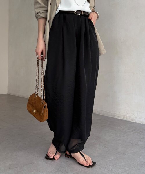 ■2026 SPRING & SUMMER ITEM■ WEB限定! 軽やかなオーガンジーで抜け感を。重たく見えない大人のタックパンツ オーガンジー特有の光沢感が都会的で洗練された一着。 タックを入れることにより、動きに合わせて表情が変わる美しいシルエットに。 「かっこいい」と「女性らしさ」を両立したアイテムで ワイドながら、シアー素材で足元が重たく見えにくいです。 Tシャツで少しカジュアルに、ブラウスでキレイ目に。 軽やかにコーデをランクアップさせてくれる一枚です。 - POINT - ・WEBでしか買えないアイテム ・オーガンジー特有の光沢感で洗練された印象に ・シアー素材で重たく見えにくい -------------------------------- 洗濯表示:手洗い可能 透け感:あり(足首) 裏地:あり 伸縮性:なし 光沢感:あり -------------------------------- 【 ♡ をクリックでお得な情報をお知らせいたします 】 〈 商品のお気に入り登録 〉 お気に入りアイテムのお値下げ・再入荷・在庫ラスト1点など通知を受けることができます。 〈 ブランドのお気に入り登録 〉 DOUDOUの新商品や再入荷、セール、クーポン配布などお得な情報を受けることができます。 -------------------------------------- ※ 生産の都合上、お届け時期が前後する場合がございます。 ※ 掲載画像の商品の色味は、 撮影場所や光の当たり具合などにより色味が異なって見える場合がございます。 また、お客様のお使いのPC・スマートフォン等のモニター環境などにより色味が異なって見える場合がございます。予めご了承の上ご注文ください。 ※ 着用、お取り扱いの際は、商品についている品質表示とアテンションタグを必ずご確認下さい。