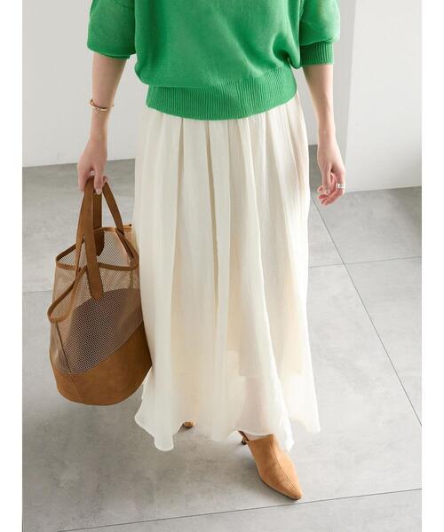 軽やかでやわらかなシャンブレーボイル素材が、動くたびに自然な広がりを見せるスカート。 ほどよくゆとりのあるシルエットで、リラックス感のある穿き心地に仕上げました。 春先はデニムジャケットや軽いカーディガンを羽織ればバランスよく仕上がります。 着回し力の高い一枚です。 ※商品画像は、撮影環境やお客様のご利用のPC・スマートフォンのモニター環境などにより実物と色味に差異がある場合がございます。 ※着用画像はサンプルを使用して撮影しております。製品と一部仕様が異なる場合がございます。予めご了承ください。 ★《お気に入り登録》でお得な情報をGET★ ① 商品ページ内のハートマークをクリック! ② 以下通知が受け取れます! 「再入荷」「ラスト1点」「特別セール」etc.. \ブランド、ショップのお気に入りも是非!/